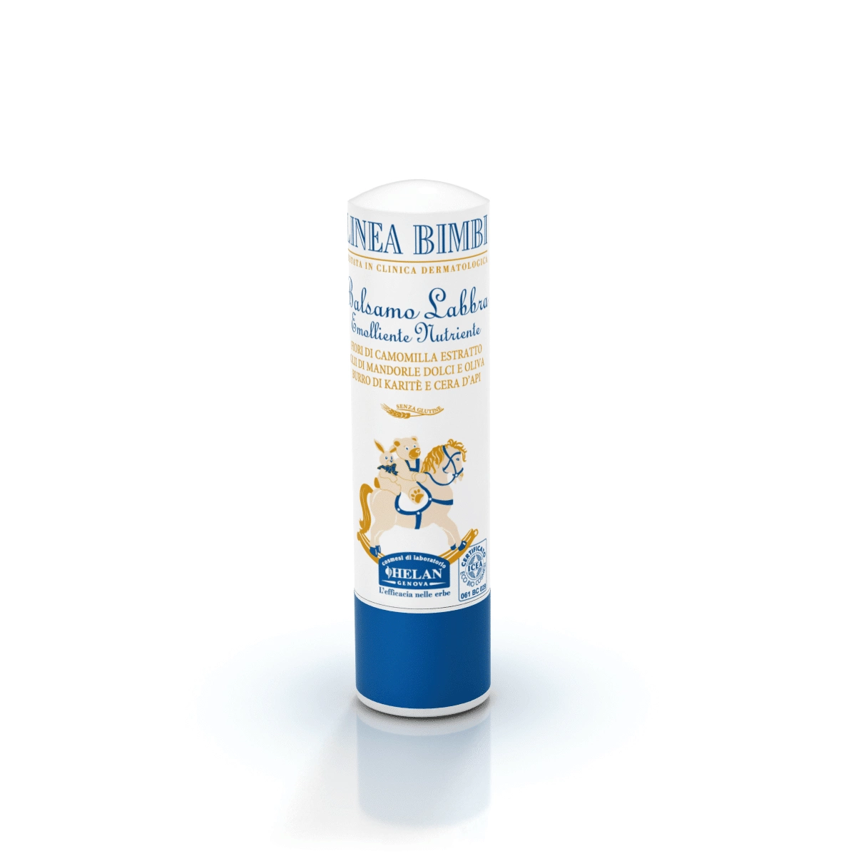 HELAN’s Baby Lip Balm contains Sweet Almond and Olive oils, Karitè butter and natural waxes that make the stick moisturizing and nourishing while the delicate, soothing properties of Camomile flowers extract relieve cracking and dryness. The sweet aroma of Vanilla gives an especially pleasant sensation for little ones.