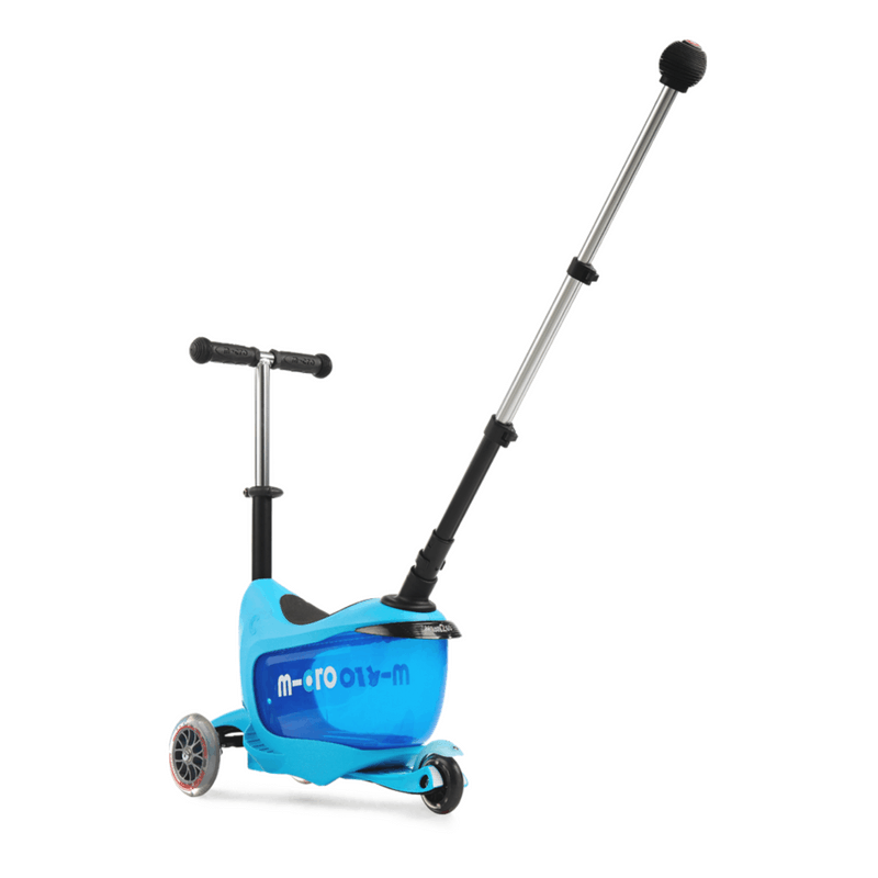 In the new Deluxe Plus version, the handlebar is height-adjustable and there is a push bar included in case you want to take over control. When the push bar