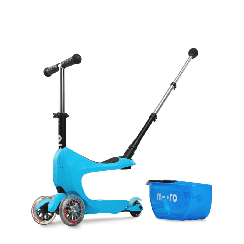 The Mini2go Deluxe is an innovative little scooter with storage space for the kids’ belongings. Once the bits and bobs are stowed away, or the snacks for a picnic in the countryside, the child simply steps on and scoots off. The Mini2go makes your little one mobile from as early as 18 months’ old and accompanies him up to the age of 5. Control takes place by means of weight transfer, thus promoting motor skills and balance in the children.