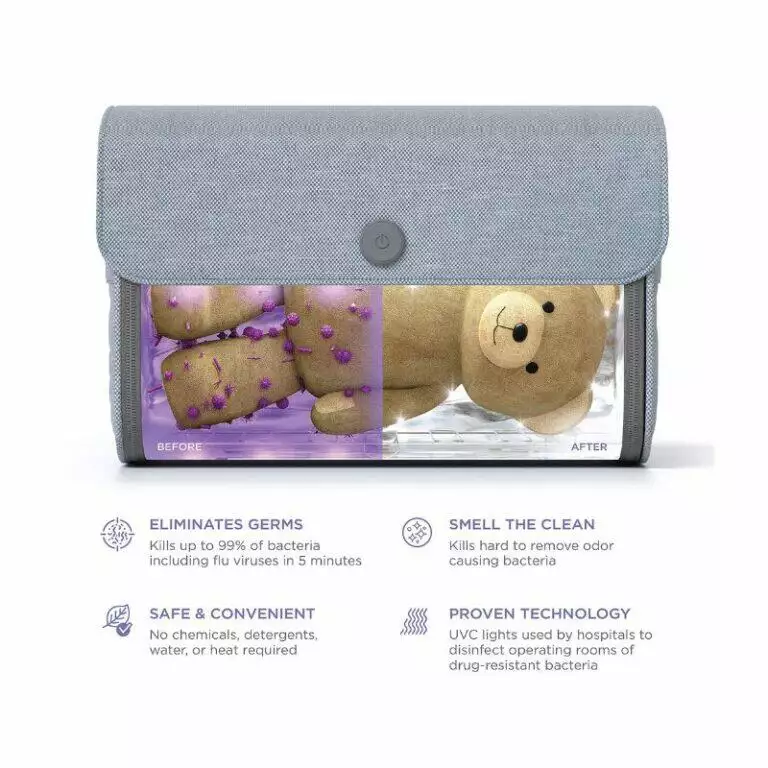 - Disinfects toys, stuffed animals, dolls and other nursery items in 5 minutes