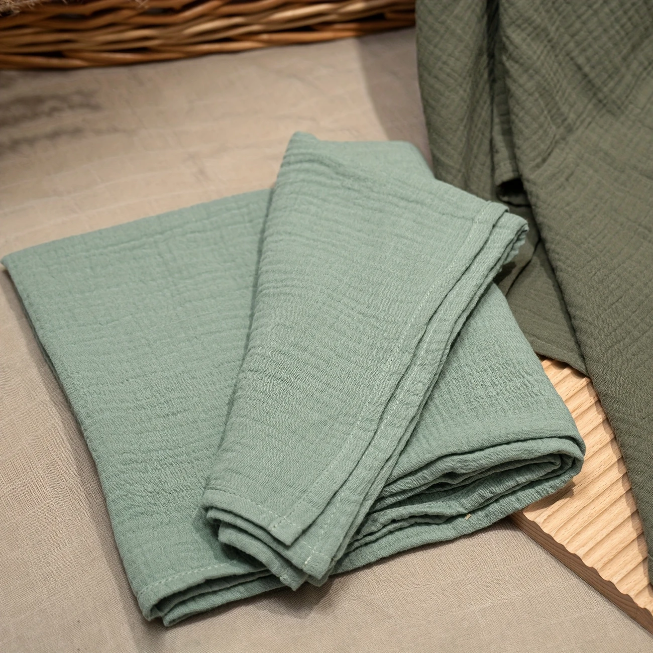 1 pcs Muslin Swaddle Blankets 100 % Cotton for, Newborn Receiving Blanket, Large 120.0 x 120.cm, Soft Breathable Muslin Baby Swaddles for Boys & Girls.Colour green and blue.