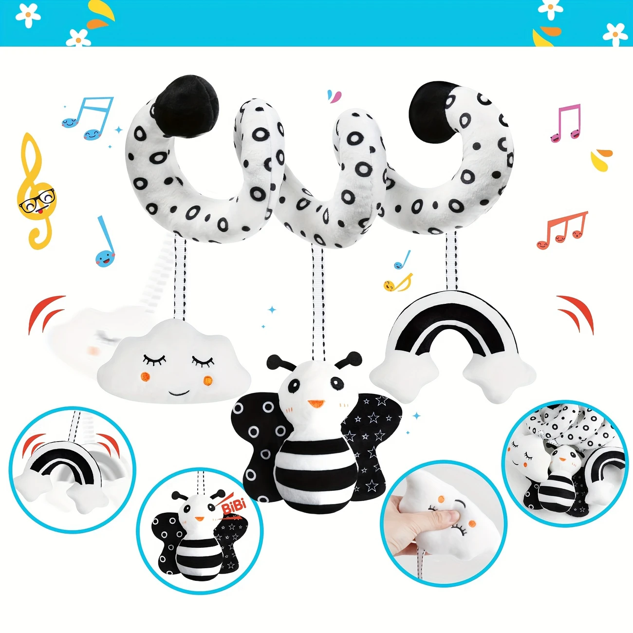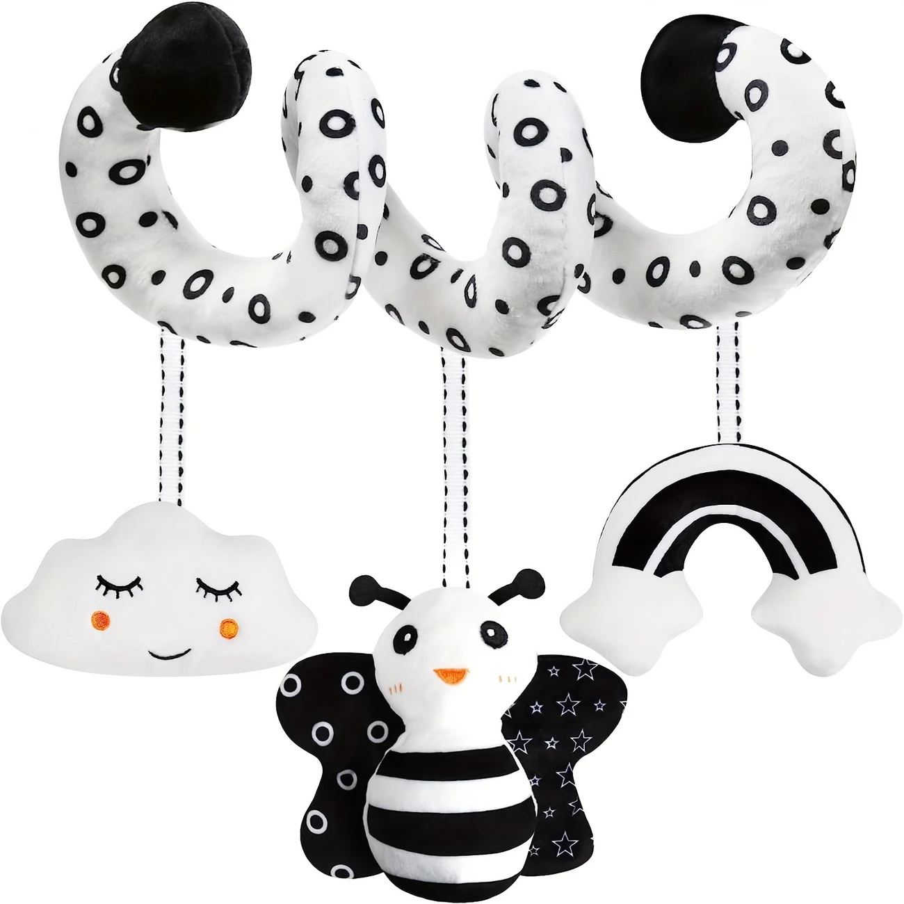 Usatdd[Random Strap Color]1pc Baby Spiral Hanging Toys for Strollers And Car Seats in Black And White High Contrast, Plush Activity Toys for Cribs, Bassinets, And Baby Carriers, Perfect Gifts for Newborns
