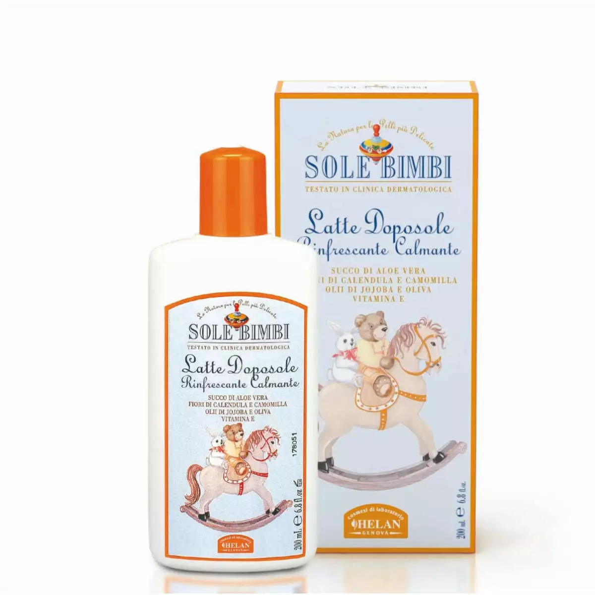 This soft milk leaves children's skin with a pleasant feeling of freshness. Extracts taken from Aloe vera juice, Camomile and Marigold flowers, rich in mucilage, Jojoba Oil, Olive oils and Vitamin E have a hydrating and calming action, particularly pleasant after exposure to the sun. Not greasy, does not stain and is absorbed quickly.